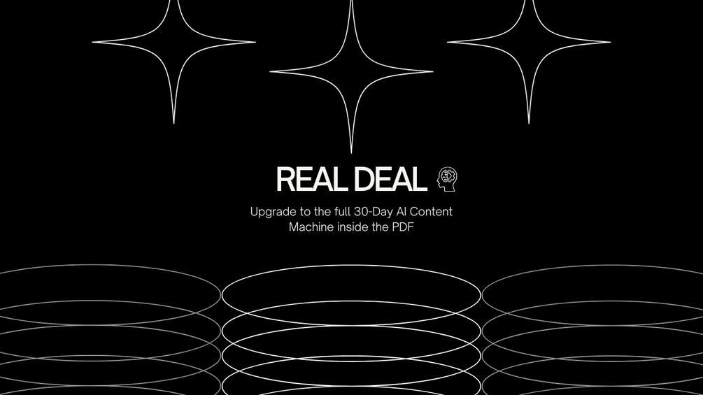 If you want the full 30-day system with 30 ideas, 20+ prompts, hook/CTA libraries, a reusable calendar, and a complete AI workflow, you’ll find the upgrade link inside the PDF.