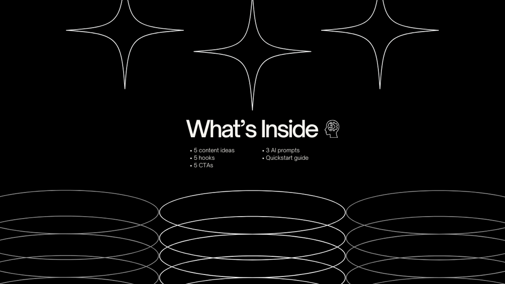 • 5-Day Content Idea System • 5 Hook Templates • 5 CTA Templates • 3 AI Prompts (caption, hook, and sales posts) • Quickstart Instructions • Upgrade link to the full 30-Day AI Content Machine